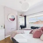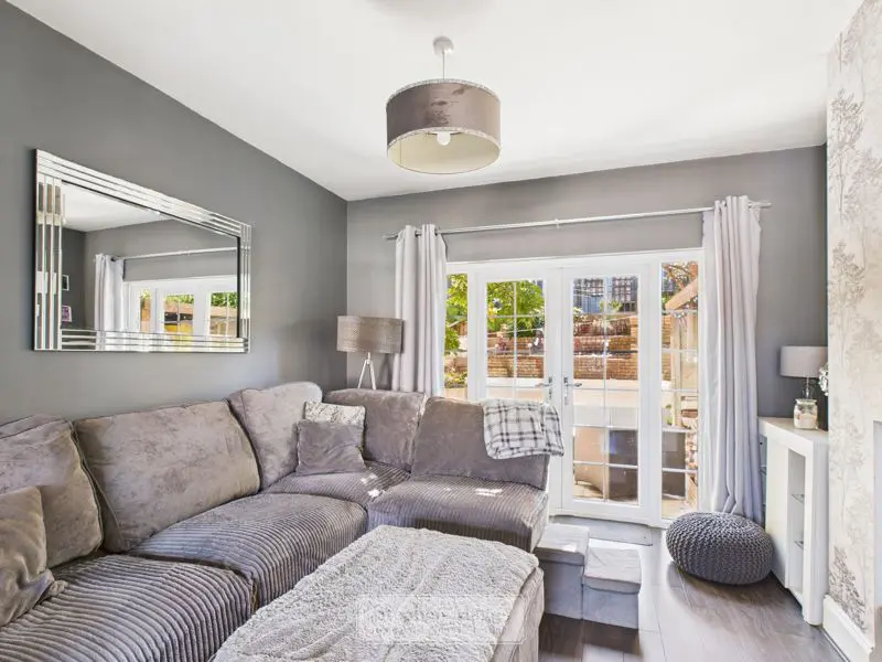 Double glazed French doors overlooking and giving access onto the rear garden, continuation of laminate flooring from the living room.