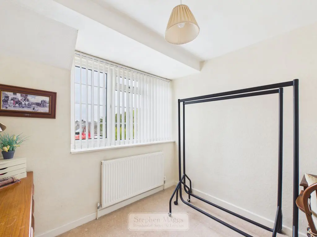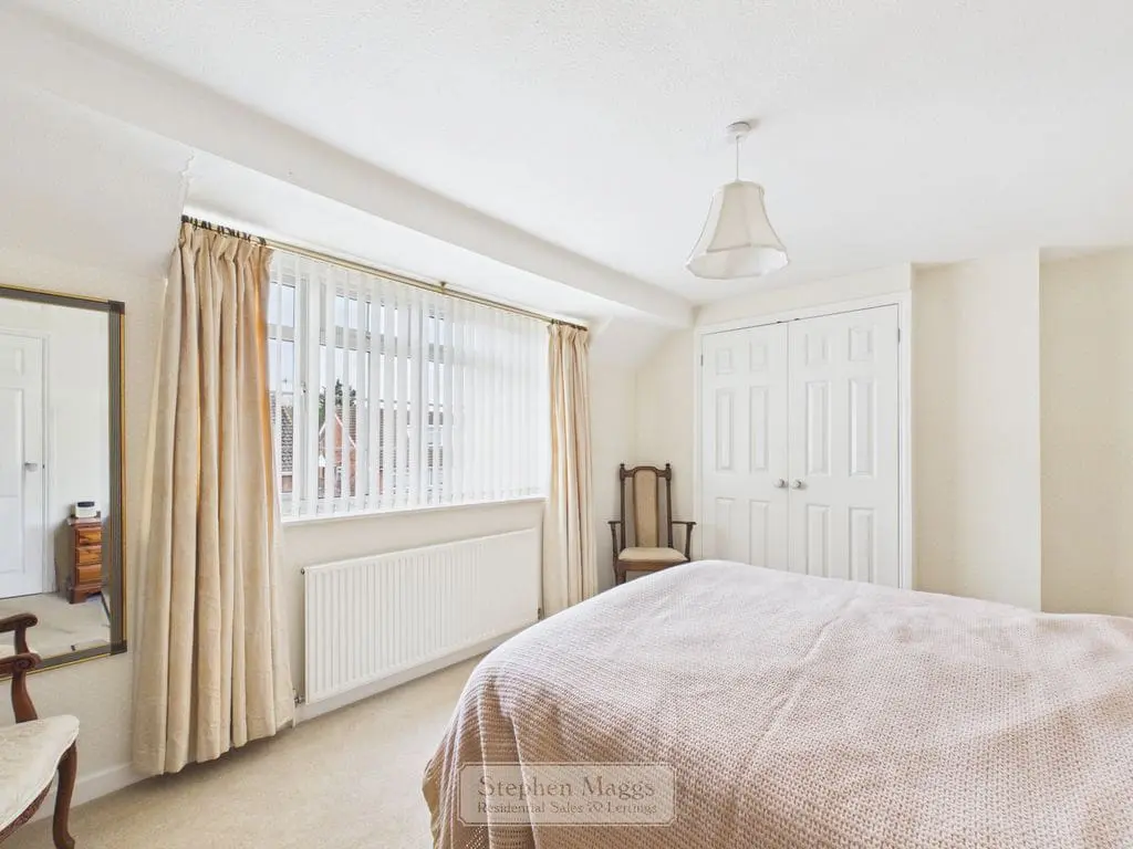 Double glazed window to the front with fitted vertical blind, panelled radiator, fitted wardrobes, large built-in over stairs storage cupboard.