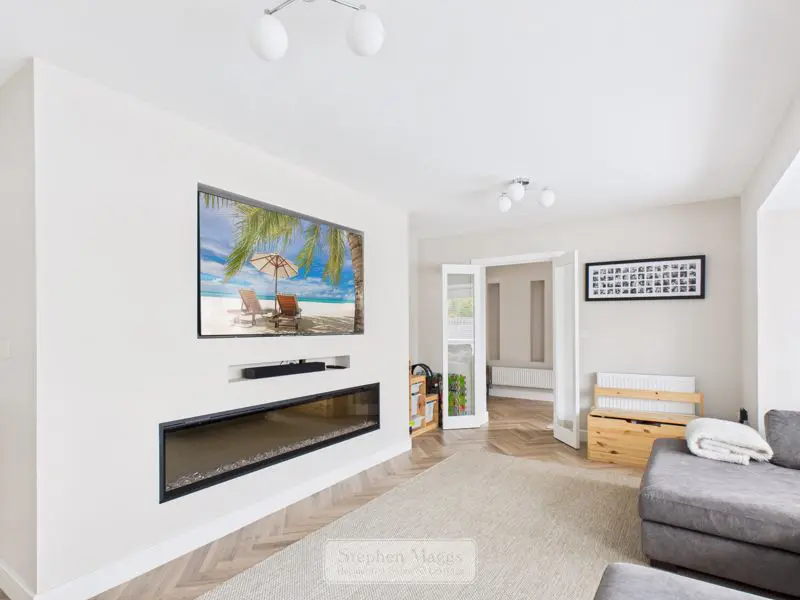 Double glazed bay window to the front with fitted venetian blinds, two double panelled radiators, television point, built in feature electric fire, glazed door to staircase which gives access to the first floor.