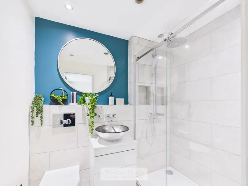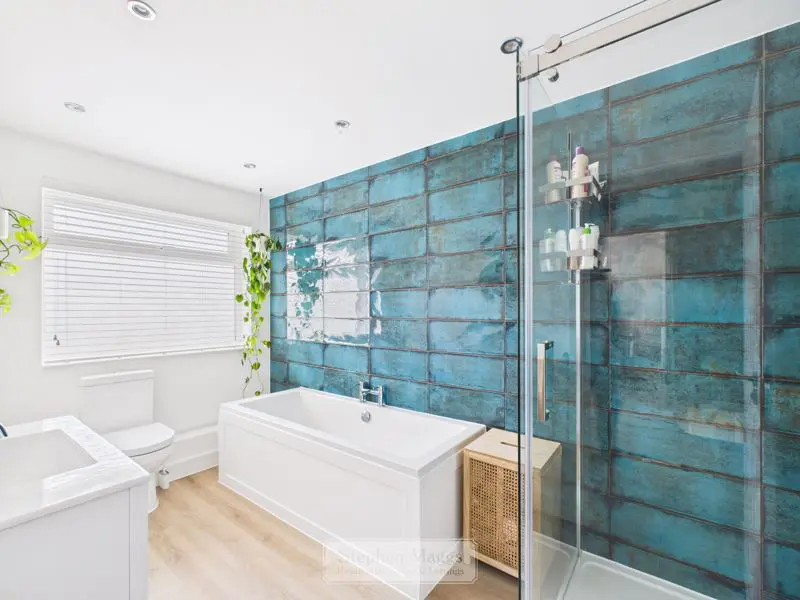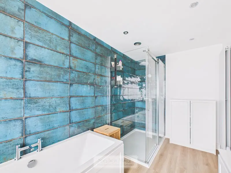 A much larger than average bathroom having an opaque double glazed window with fitted venetian blind to the rear. The bathroom is fitted with a large tiled shower cubicle with mixer shower having both overhead and body sprays, full sized panelled bath, vanity wash hand basin, close coupled W.C, extensive tiling, designer radiator.