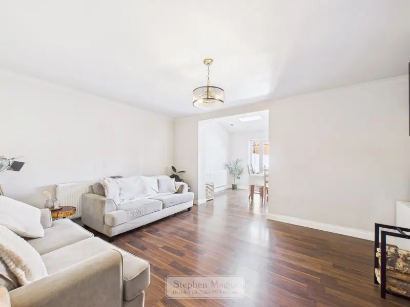This occupies a single story extension to the rear, double glazed French doors with side panels overlooking and giving access onto the rear garden, two Velux style windows, continuation of the laminated flooring, double panelled radiator.