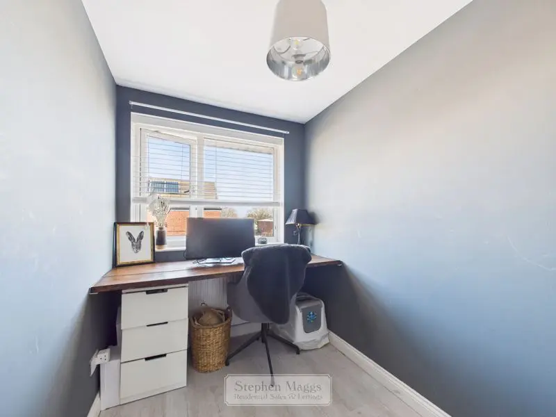 Double glazed window to the rear with fitted Venetian blind, laminated flooring, panelled radiator.