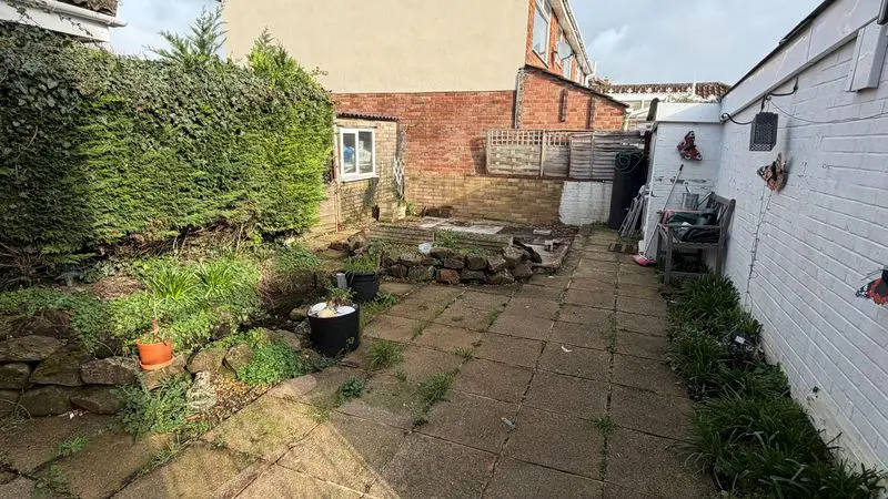 At the rear is an enclosed garden, being laid to paving with fishpond. The garden needs landscaping.