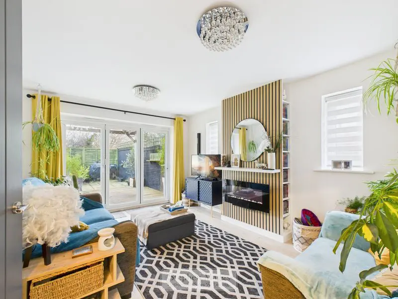 Triple panel Bi-Fold door overlooking and giving access onto the rear garden, two double glazed windows with fitted roller blinds to the side, electric remote controlled Focal point fire, television point, continuation of Karnden flooring from the hallway, double panelled radiator.