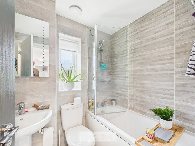 Opaque double glazed window to the rear, fitted with a white suite comprising of panelled bath with mixer tap and separate mixer shower, glass shower screen, pedestal wash hand basin, close coupled W.C, tiled walls, Karnden tiled flooring, illuminated demisting mirror.