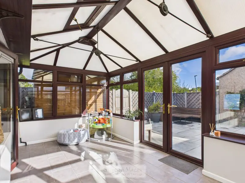 A substantial double glazed Conservatory having tiled floor, double panelled radiator, double glazed French doors giving access to the rear garden.