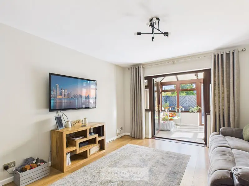 Leaded double glazed French door with side windows overlooking and giving access onto the Conservatory at the rear, television point, laminated timber flooring, double panelled radiator.