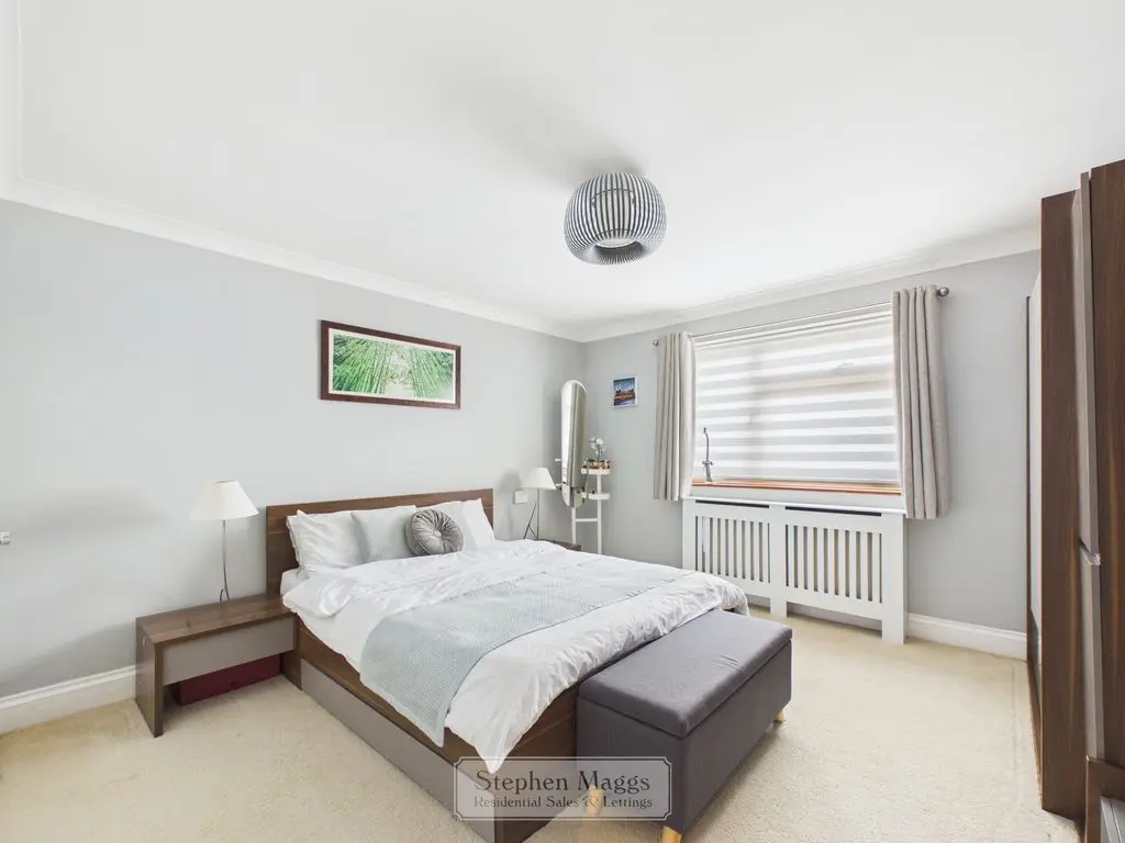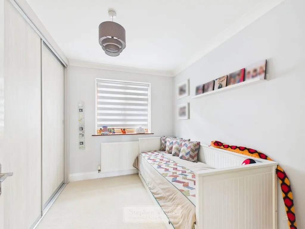 Double glazed window to the side with fitted roller blind, wall to wall fitted wardrobes with sliding doors, panelled radiator.