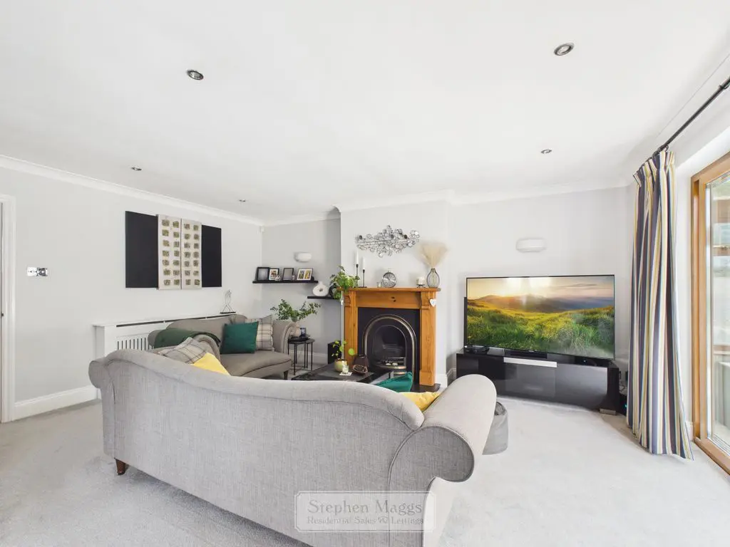 A large ‘L’ shaped room having a feature fireplace, uplighters, recessed low voltage spotlights, two radiators with decorative covers, television point, patio style door giving access onto the conservatory, and square opening through to the kitchen.