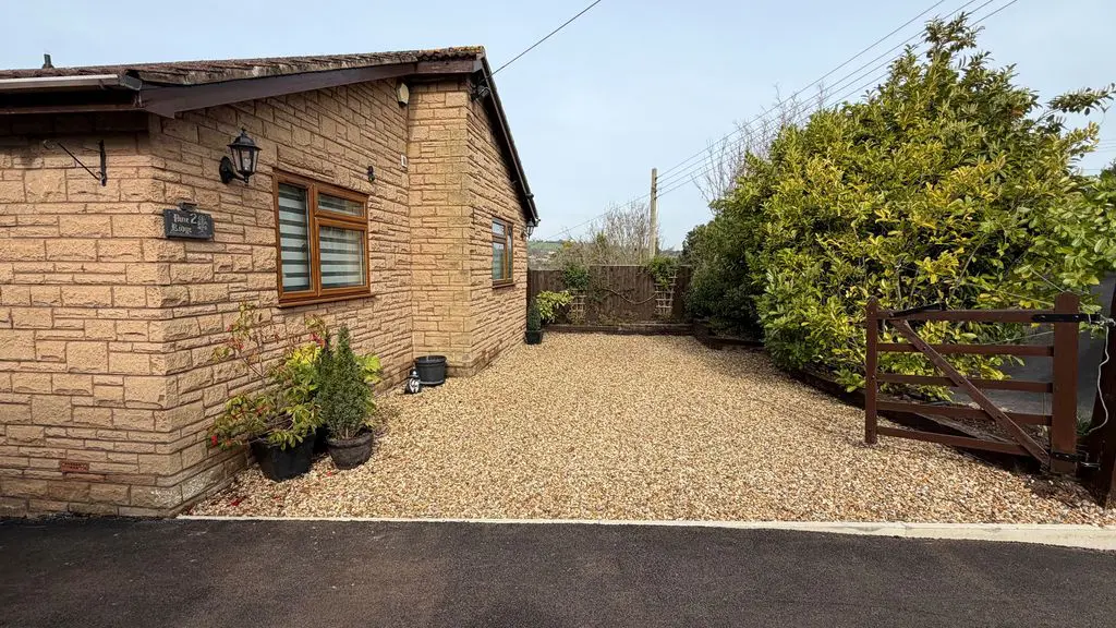 At the front is a good size garden laid to coloured stones, with flower and shrub bed. To the side of which is a tarmac driveway with lighting providing off road parking for two – three cars which leads to the garage, pathway to the side of the garage, gate that gives access to the rear garden.