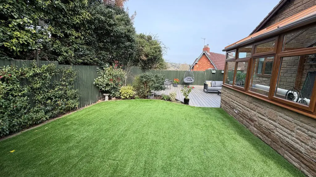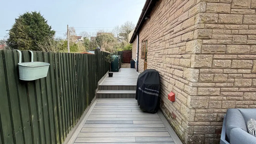 Enclosed with walling and lapwood fencing, having a good size area laid to artificial grass with a timber shed, flower bed, and a very good size of composite decking which extends to the side of the property. To the side their is an oil storage tank and a gate returning to the front garden.