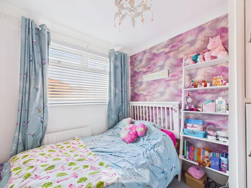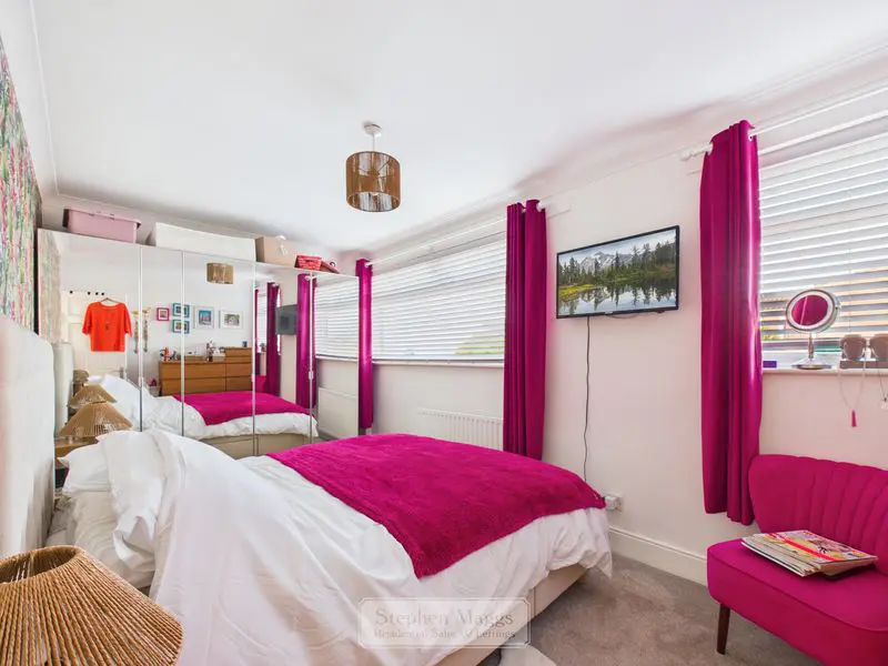 Two double glazed windows with fitted Venetian blind to the rear, single panelled radiator, coved ceiling.