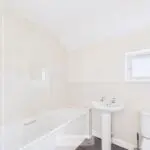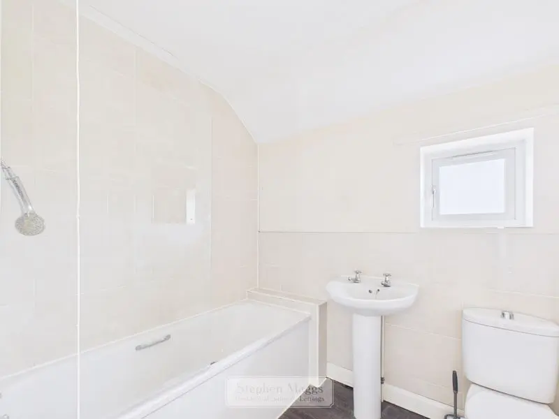 Opaque double glazed window to the front, fitted with a white suite comprising of panelled bath with mixer shower and glass shower screen, pedestal wash hand basin, close coupled W.C, tiled surrounds, electric extractor fan, panelled radiator.