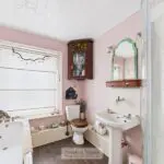 A larger than average bathroom having an opaque double glazed tilt and turn window to the front, fitted with a white suite comprising of a panelled bath, pedestal wash hand basin, close coupled W.C, separate shower cubicle with mixer shower, tiled surrounds, laminated timber flooring.