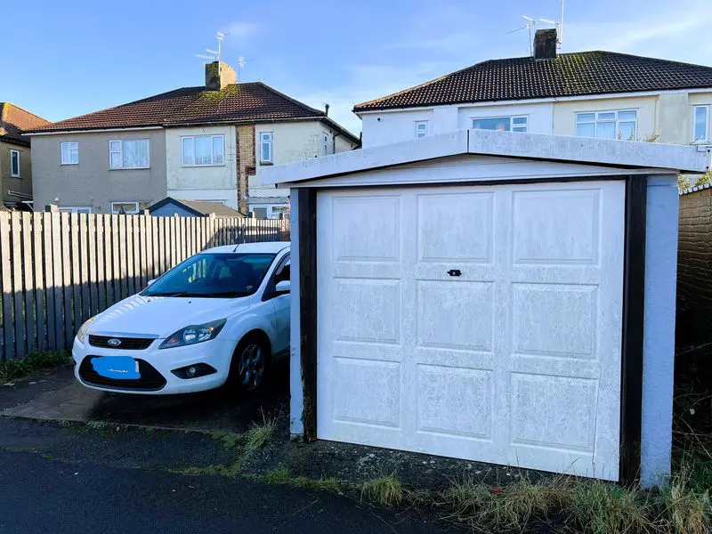 Outside to the there is hardstanding for one car, to the side of which is a garage which has a metal up and over door and side personal door, approached via pathway.